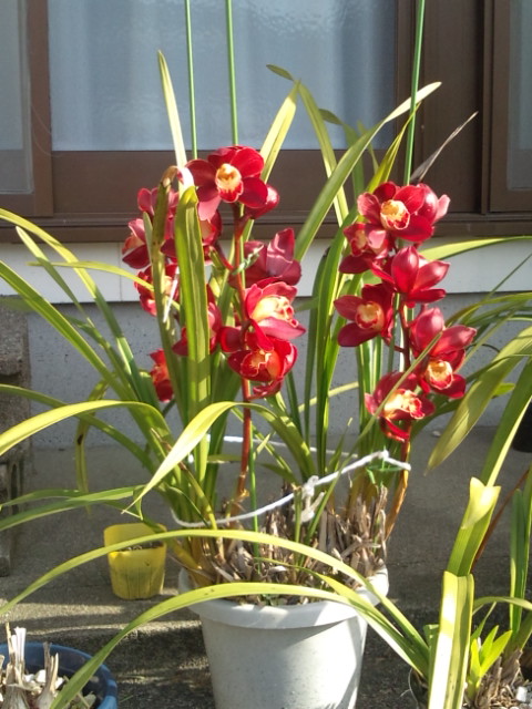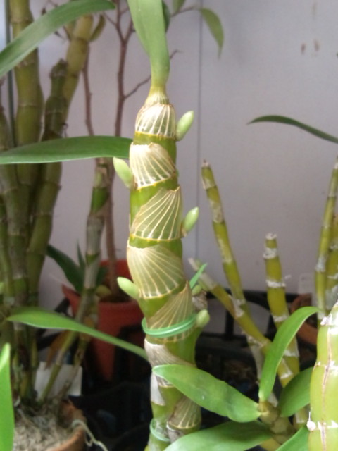 外でシンビジュームが咲きようやん、そこで(ノビル系デンドロも)花芽も出ようやん、となかなか首を縦に振ってくれませんT-T