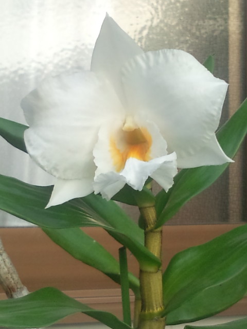 自分が洋蘭栽培にはまったきっかけとなったもので、10cmほどもある大輪の白花です。