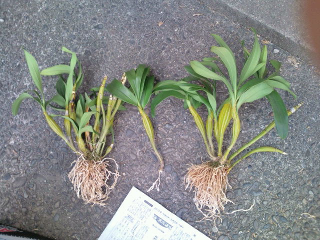 写真手前の2つが、リードのみ+根っこ2〜3mmとリード+根っこ(バックバルブなし)の株。