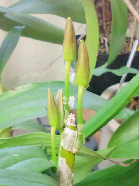 ノビル系の蕾と原種デンドロの様子