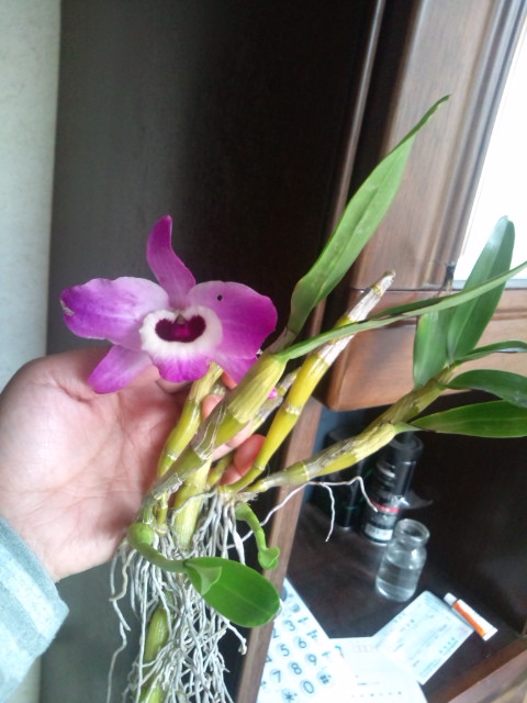 ウィルスに犯されたっぽいデンドロ2鉢を処分して場所も空いたなーと思っていたんですが、思わぬ新入り乱入になりました。