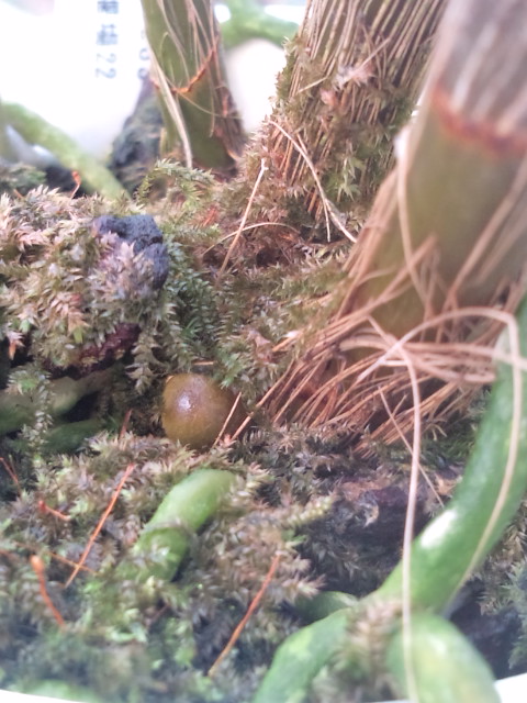 株元が枯死してたので高芽の出ているところまで水苔で埋めました。
